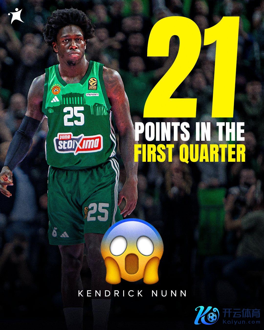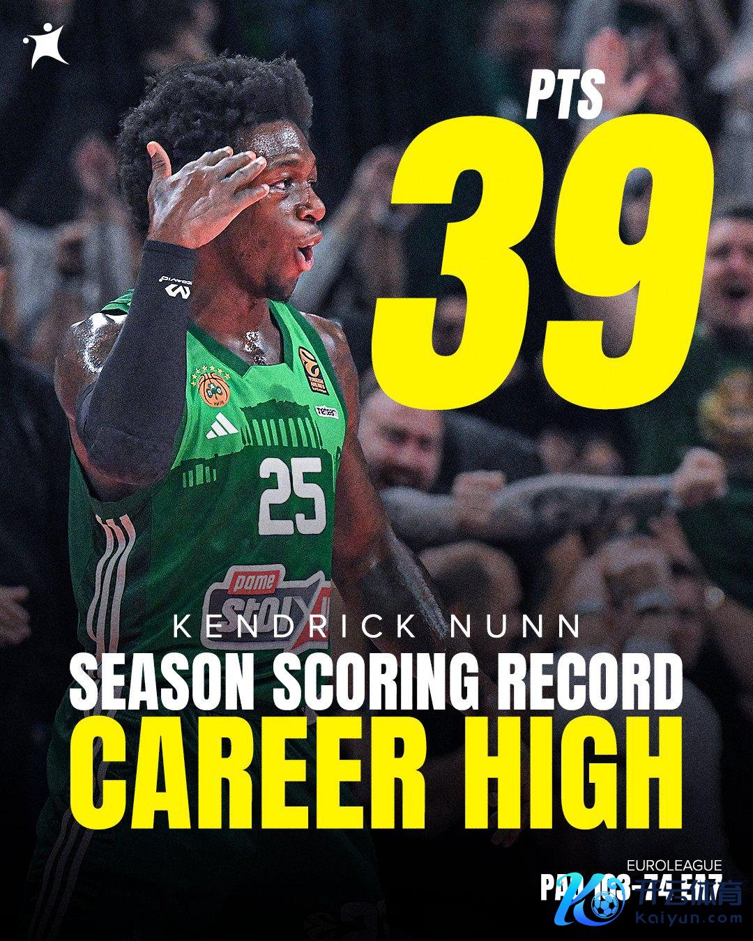 直播吧12月18日讯 欧洲篮球联赛第16轮,帕纳辛奈科斯103-74大捷米兰奥林匹亚开云网站,前NBA球员肯德里克-纳恩爆砍39分。