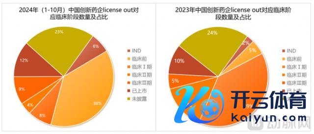 图表29 2023-2024中国翻新药企license out交游对应临床阶段变化 数据开端:好意思柏必缔,动脉智库