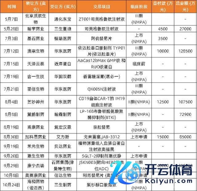 2024年1-10月,据动脉智库不透顶统计,总共发生16起Biotech向原土药企转让生意化职权事件,触及交游清晰总金额72.9亿元,首付款金额8.6亿元。