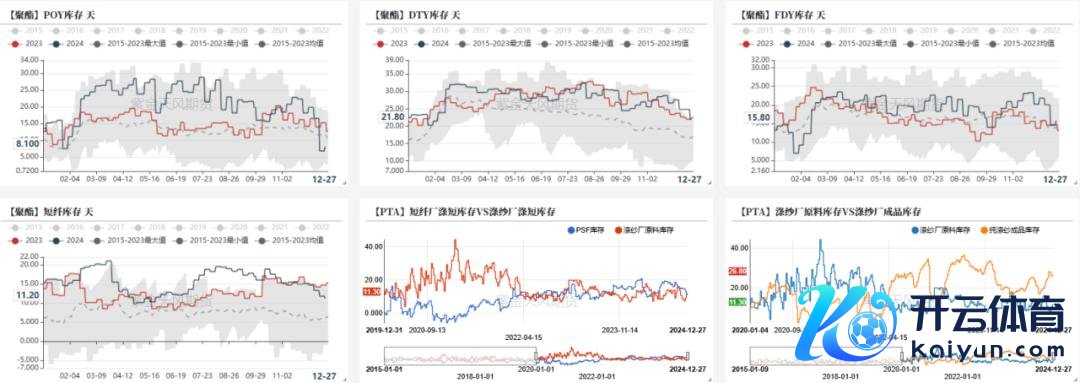 卑劣库存略回升。法例12.27日POY、DTY、FDY和短纤库存在8、21、15.8和11.2天。