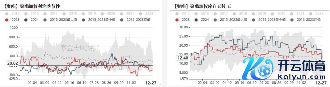 截止12.27日,聚酯负荷至90%隔邻,聚酯现款流握稳,聚酯平均库存12.4天隔邻。聚酯库存压力不大,节前休假降负节律瞻望1月10日前后,需求淡季推崇不差。