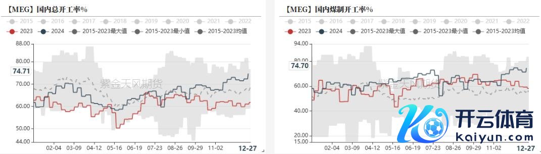 MEG全体负荷在年内高位。法例12月27日乙二醇周均总负荷74.7%,煤制负荷74.7%。
