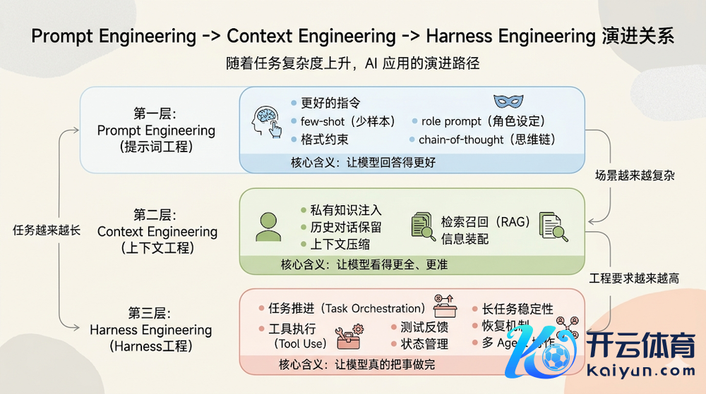 咫尺被动为Harness“抬肩舆”的是Prompt Engineering与Context Engineering。要尽头说少许,领导词工程一定是AI欺骗中枢中的中枢,只不外似乎最近他与Context Engineering,被一齐包裹进了Harness了: