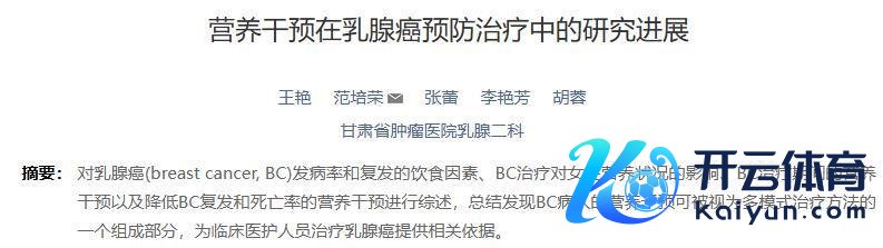 [1]王艳,范培荣,张蕾,等.养分搅扰在乳腺癌防护疗养中的研究进展[J].全科照看,2024