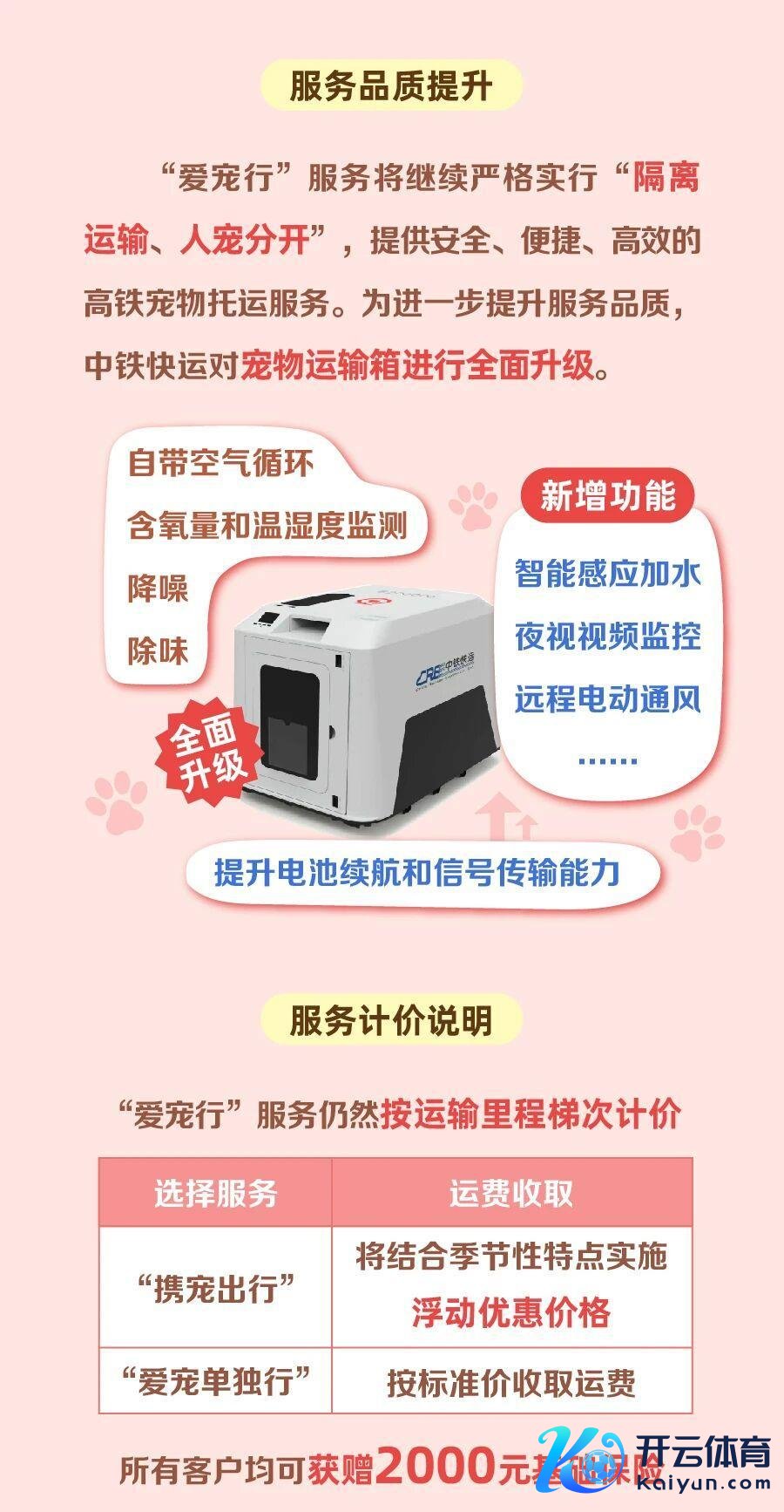 近日开云网站,寰宇铁路宠物托运管事迎来升级。